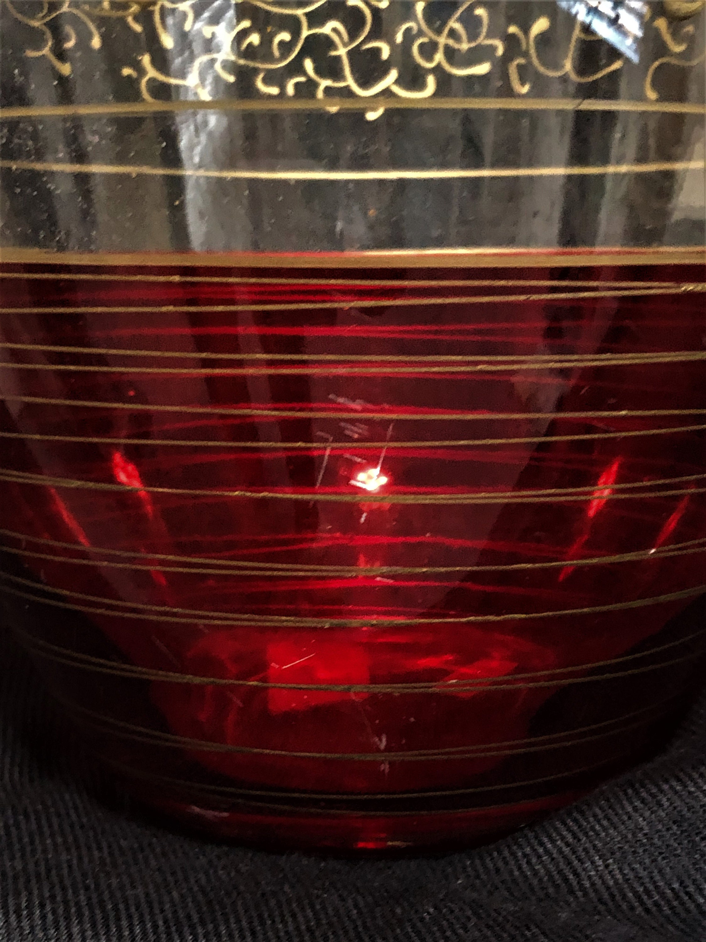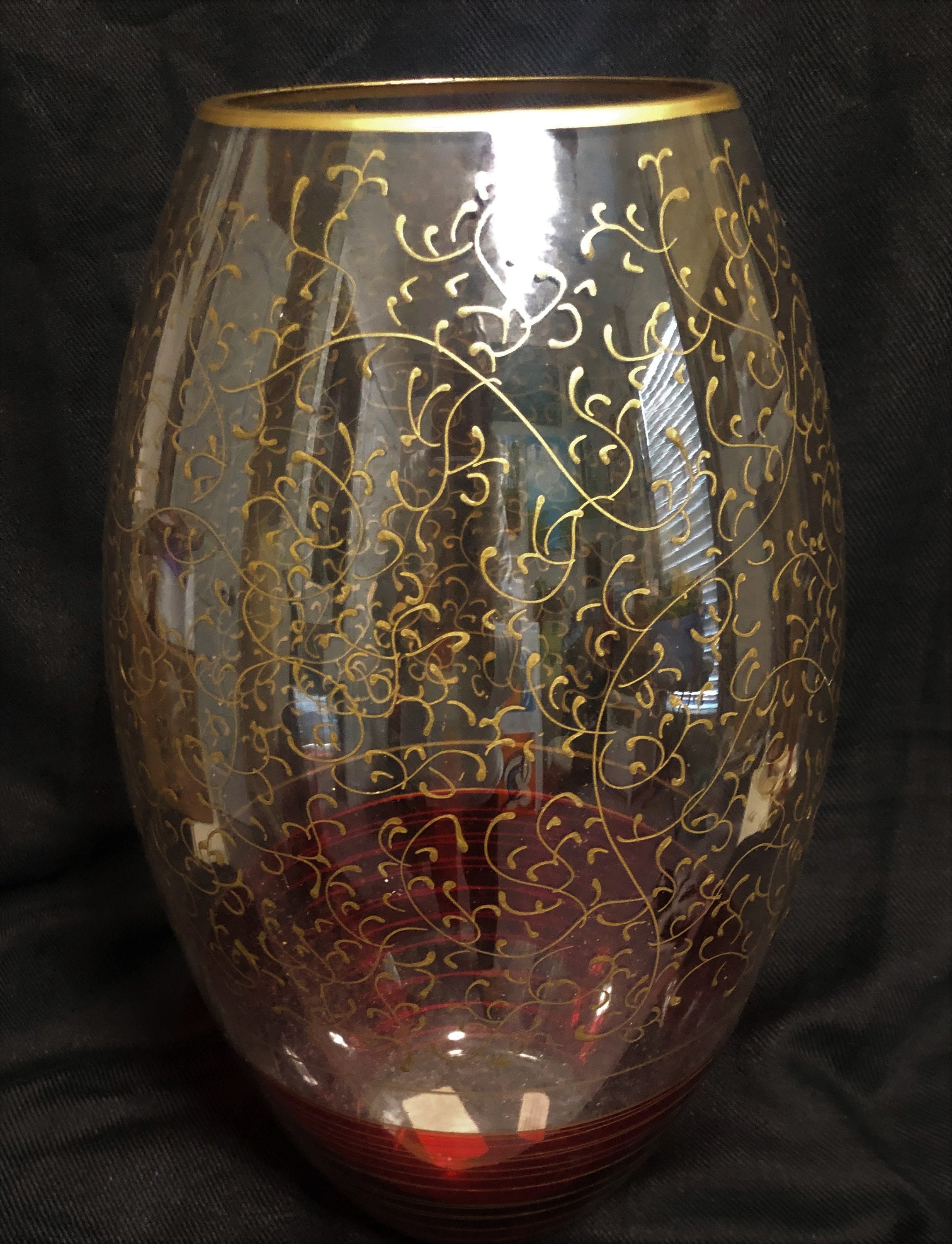Get ready for the dozen roses on Valentine’s Day! A beautiful Pier One, made in Romania, Red Flash Vase that compliments the popular Red Flash champagne Flutes - Just in time for the Holidays! Some minor scratches on the bottom of the vase as shown in the photographs, but no chips. The detail is exquisite and this is a rare find! Measure 14" Tall