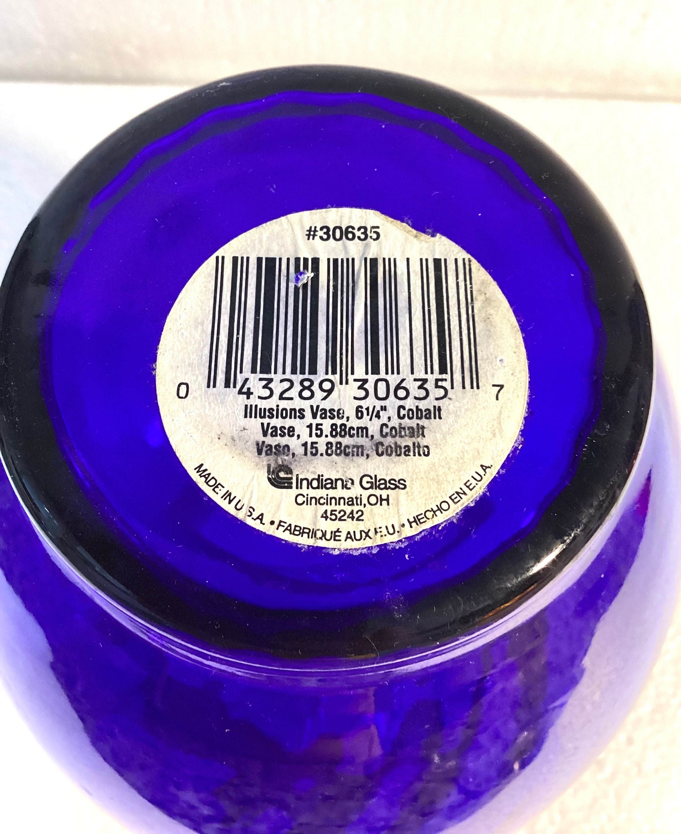 Beautiful Cobalt Blue hand blown glass Illusion vase by Indiana Glass. Cobalt always commands a visual effect in any setting, traditional or contemporary. Perfect for the fresh bouquet of flowers or a stand alone art object. Original identifying sticker in place. Measures 6.25”H x 4.5” D