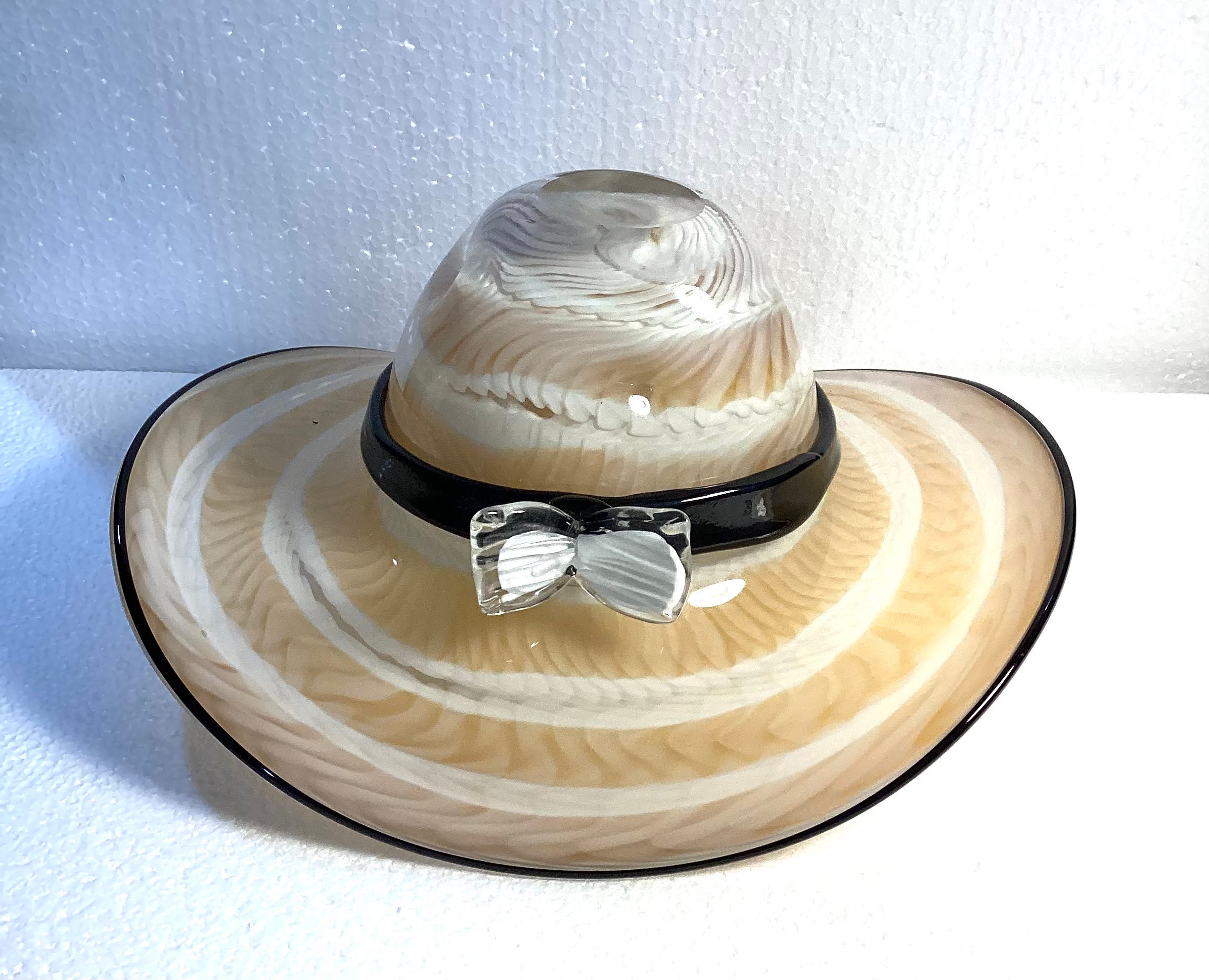 Certainly a stand alone art piece resembling a traditional straw hat, but what a functional and conversational piece if used for a wedding - singles put your name in the hat or put your name in the hat at a “mixers/get to know each other” party! Limitless creative uses for this unique piece of art glass!