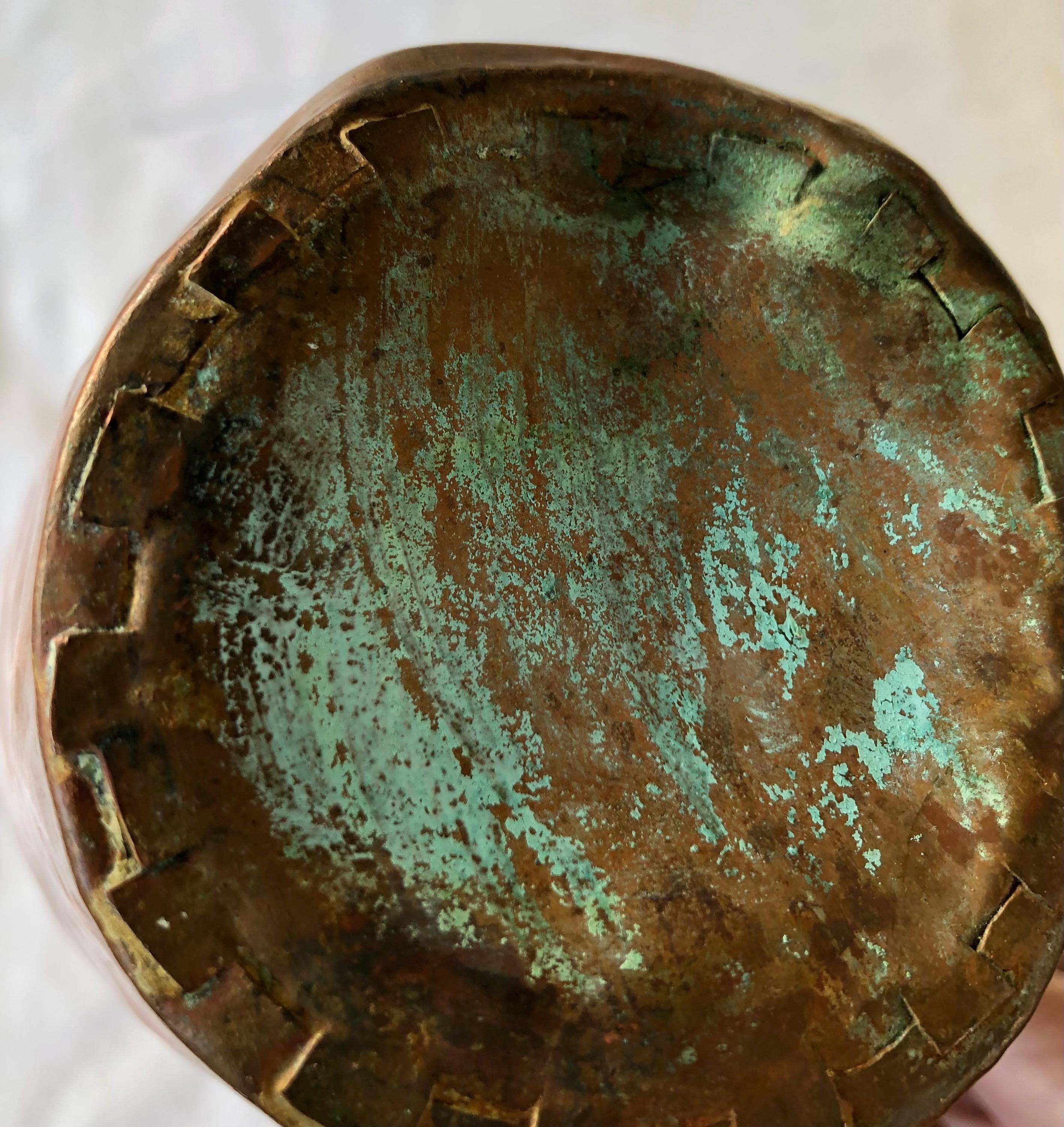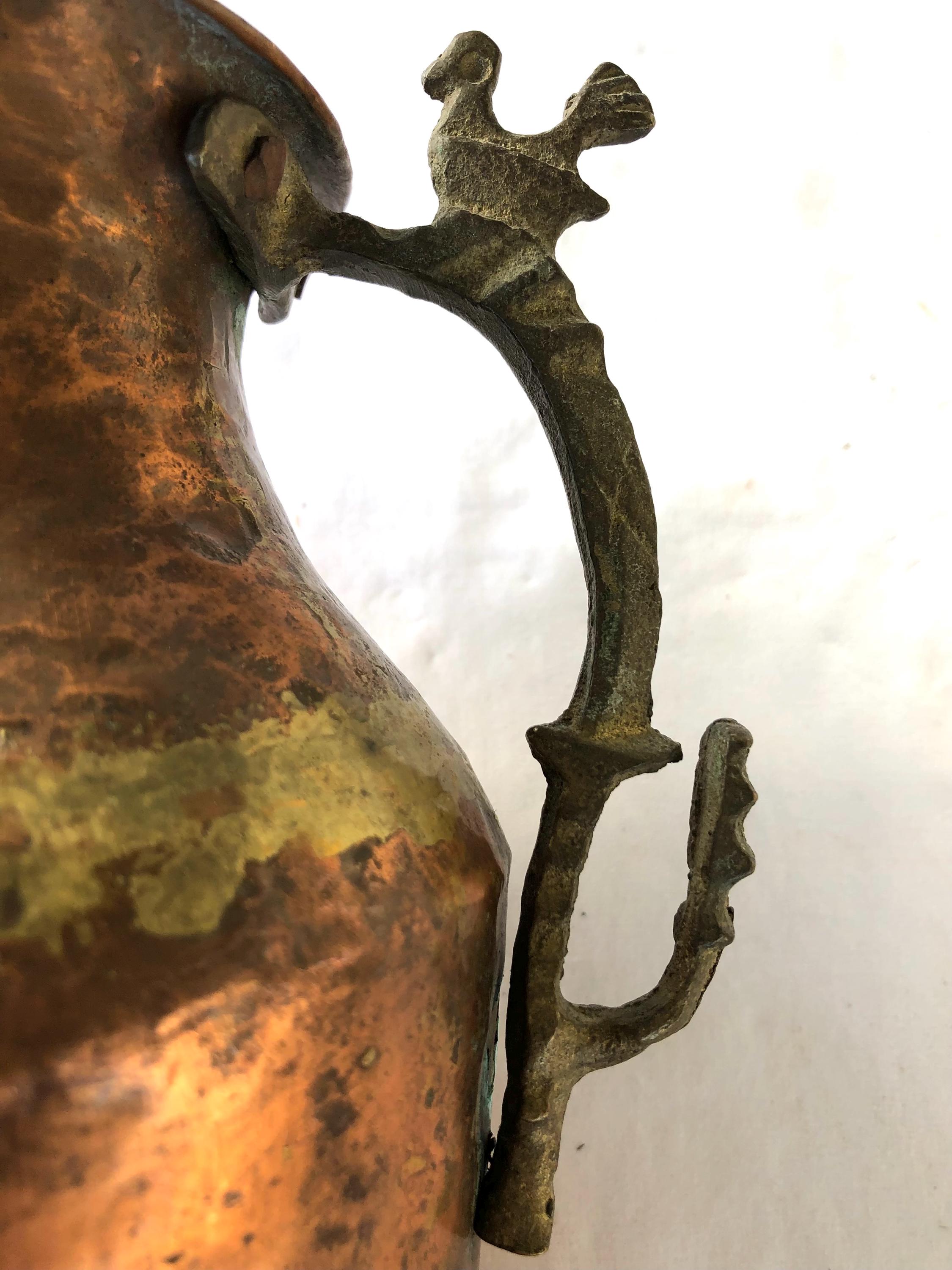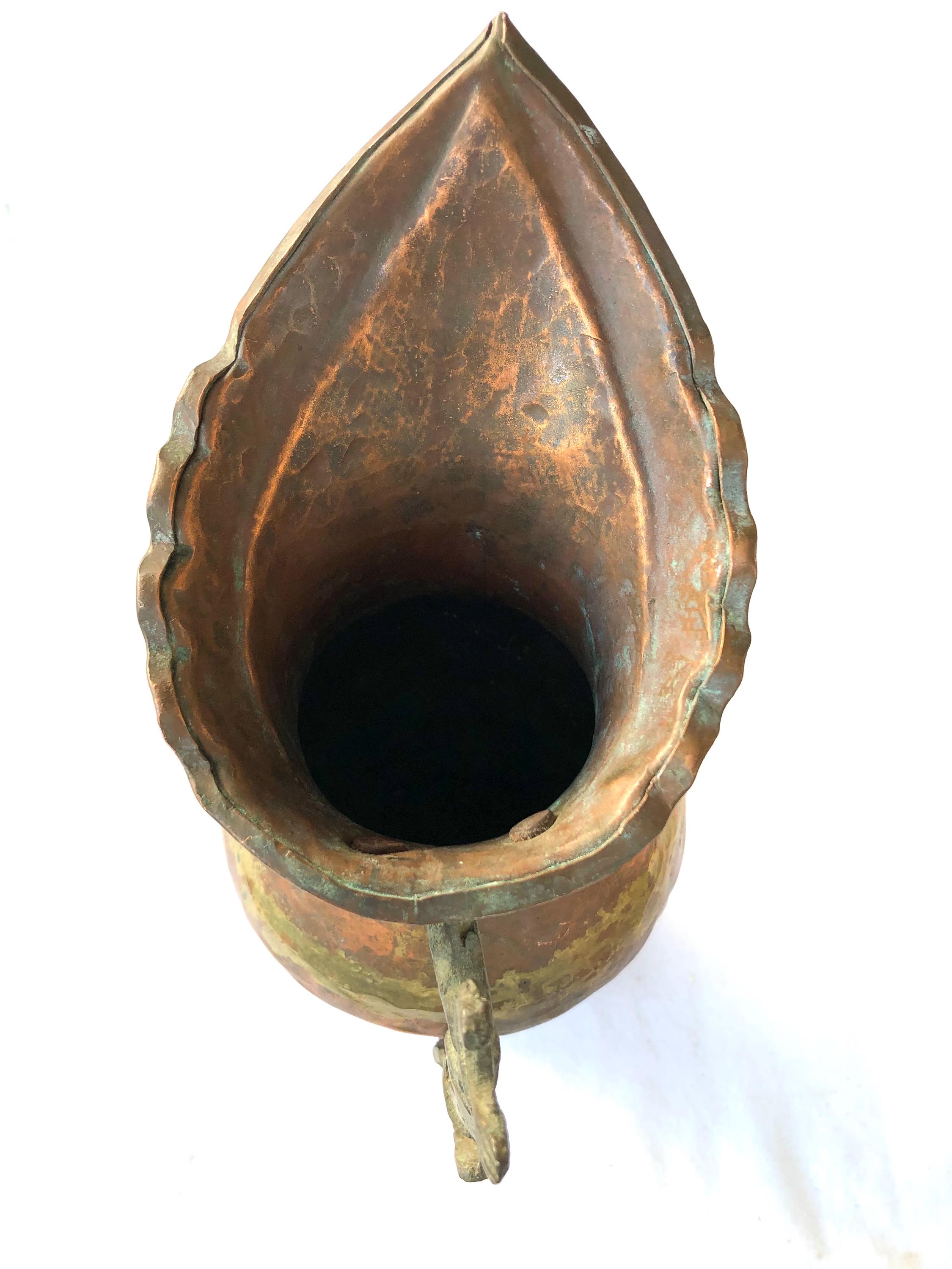 Brass and Copper Ewer 10” H Rustic ( purchased with dent and raw patina) see photos. great accent piece for floral design it stand alone pitcher.