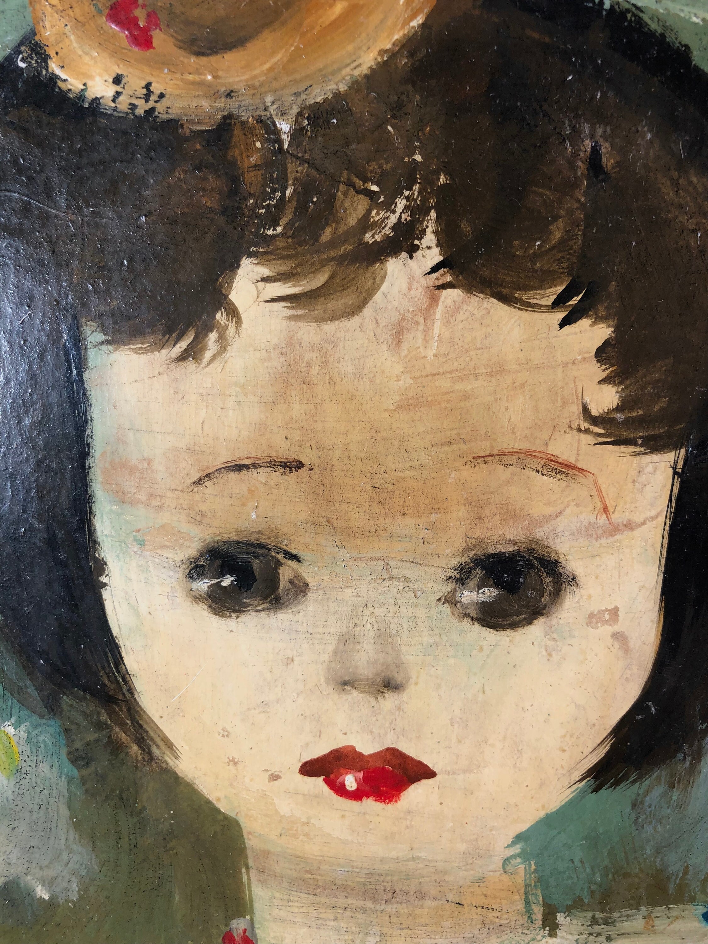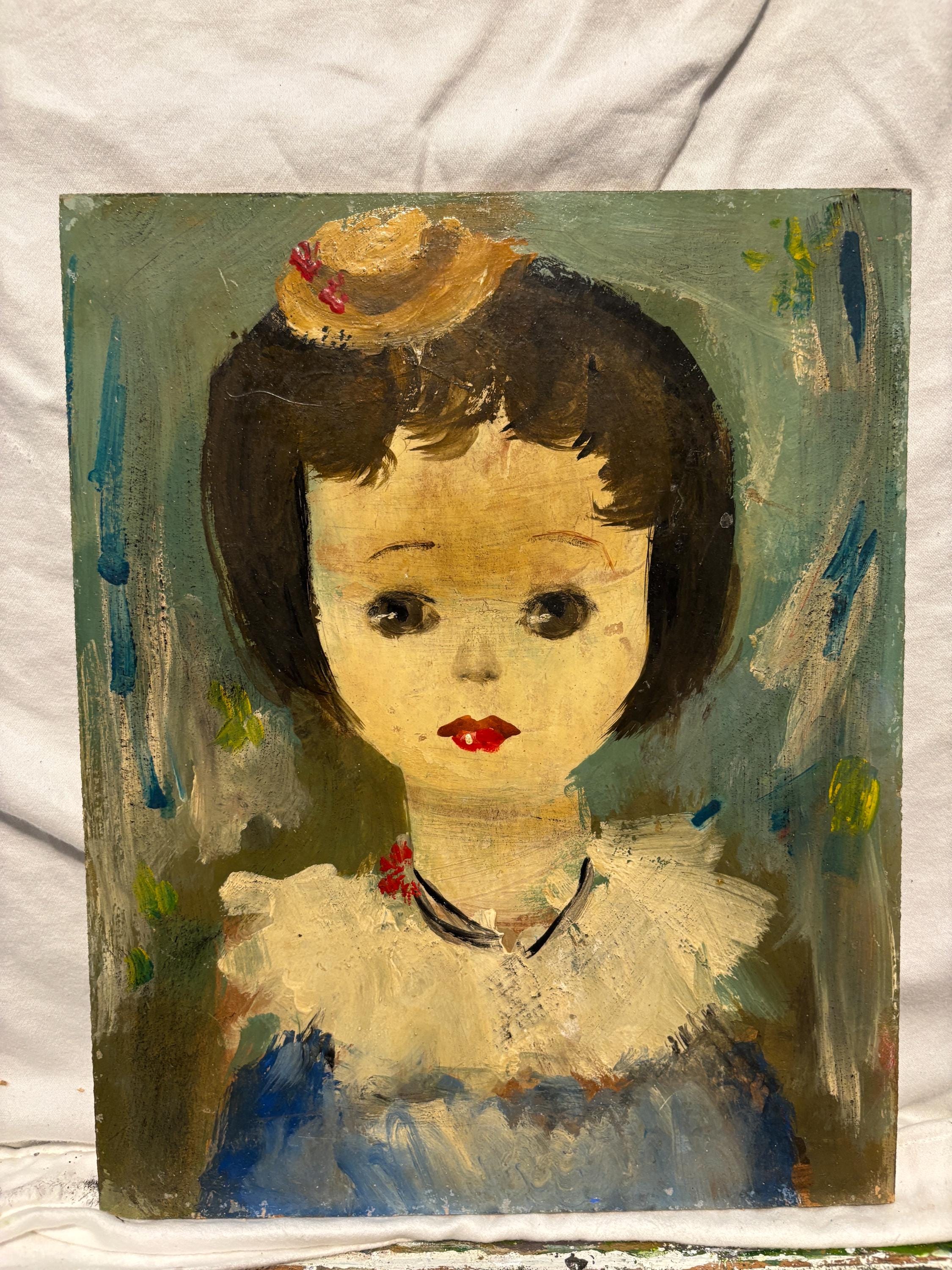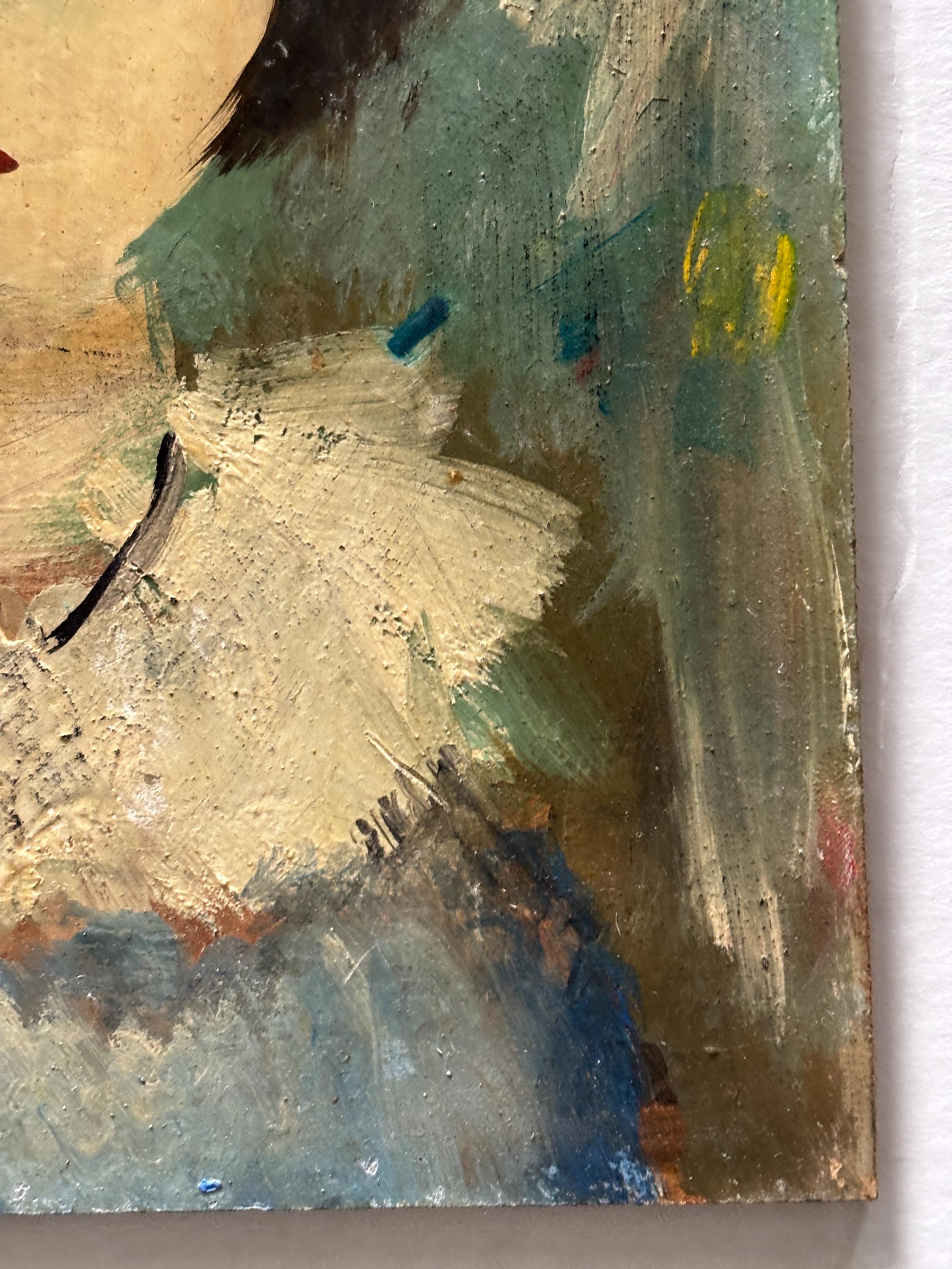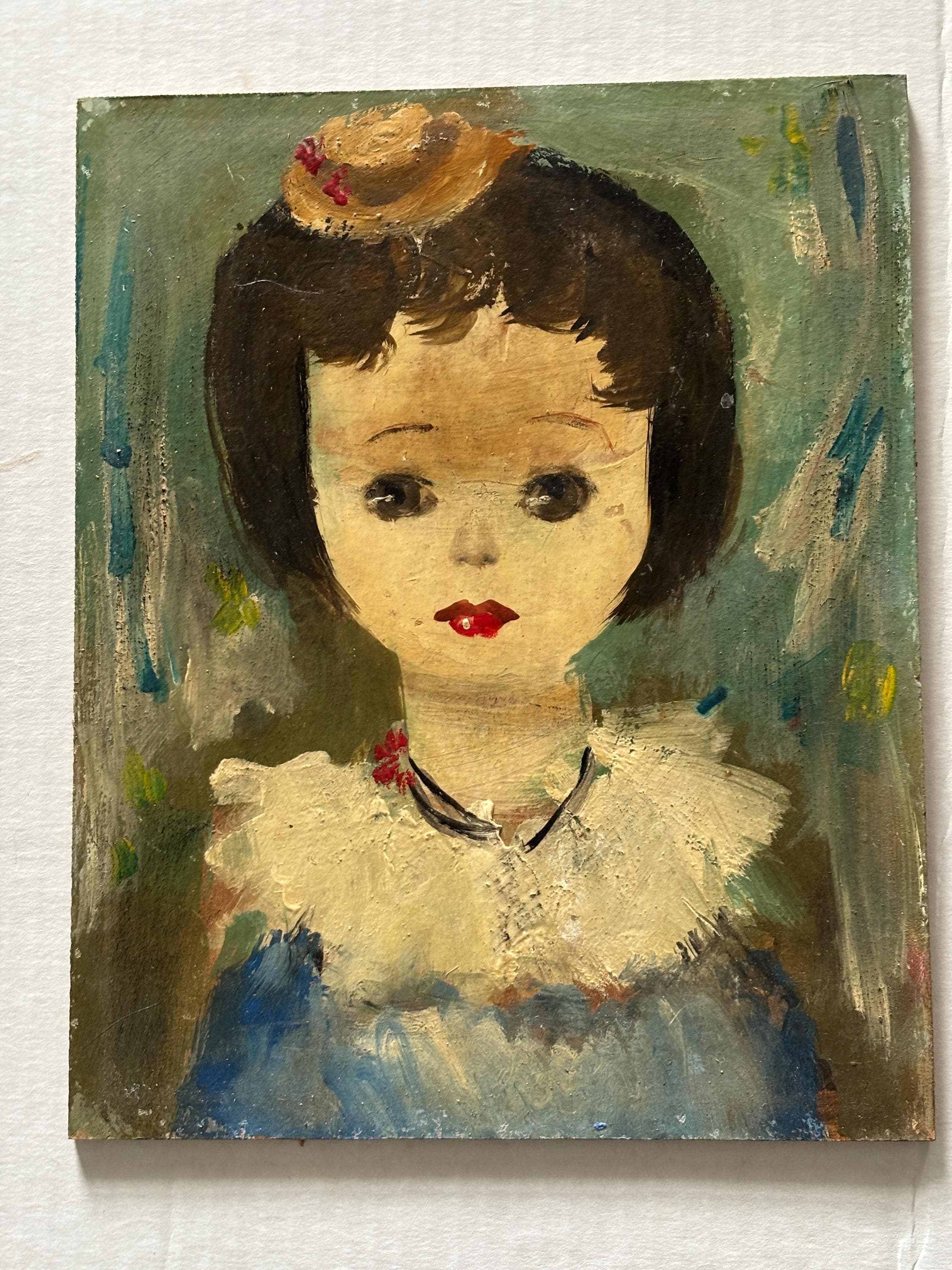Alvaro Villamor (Born 1929) is active/lives in Spain according to online research. His works are a rare but delightful find. It is unsigned, but the original label states that it is his work. I have fondly named it "Young Girl Wearing A Hat", though it is untitled. Two paintings are available, this listing is for one of the two.