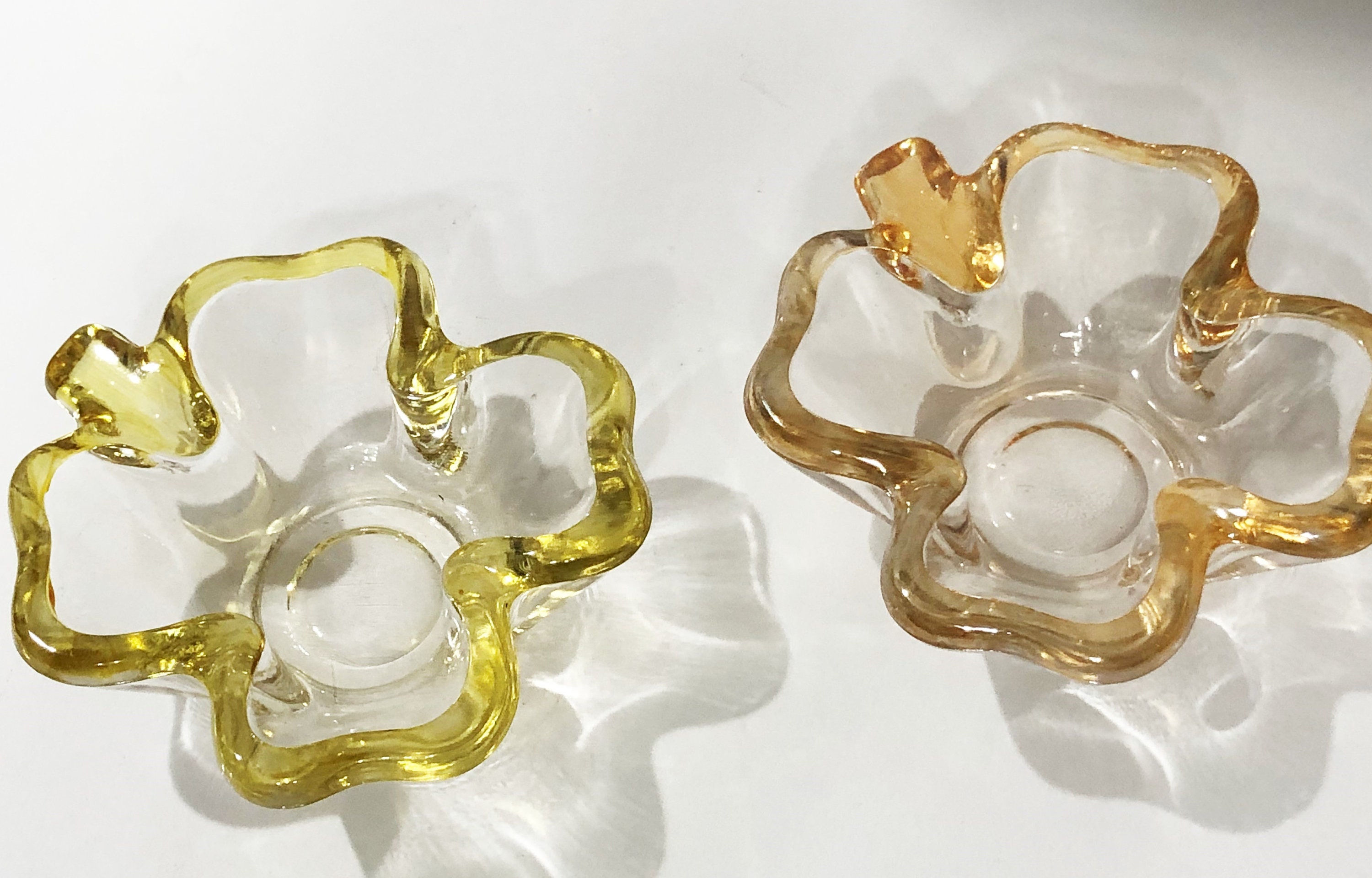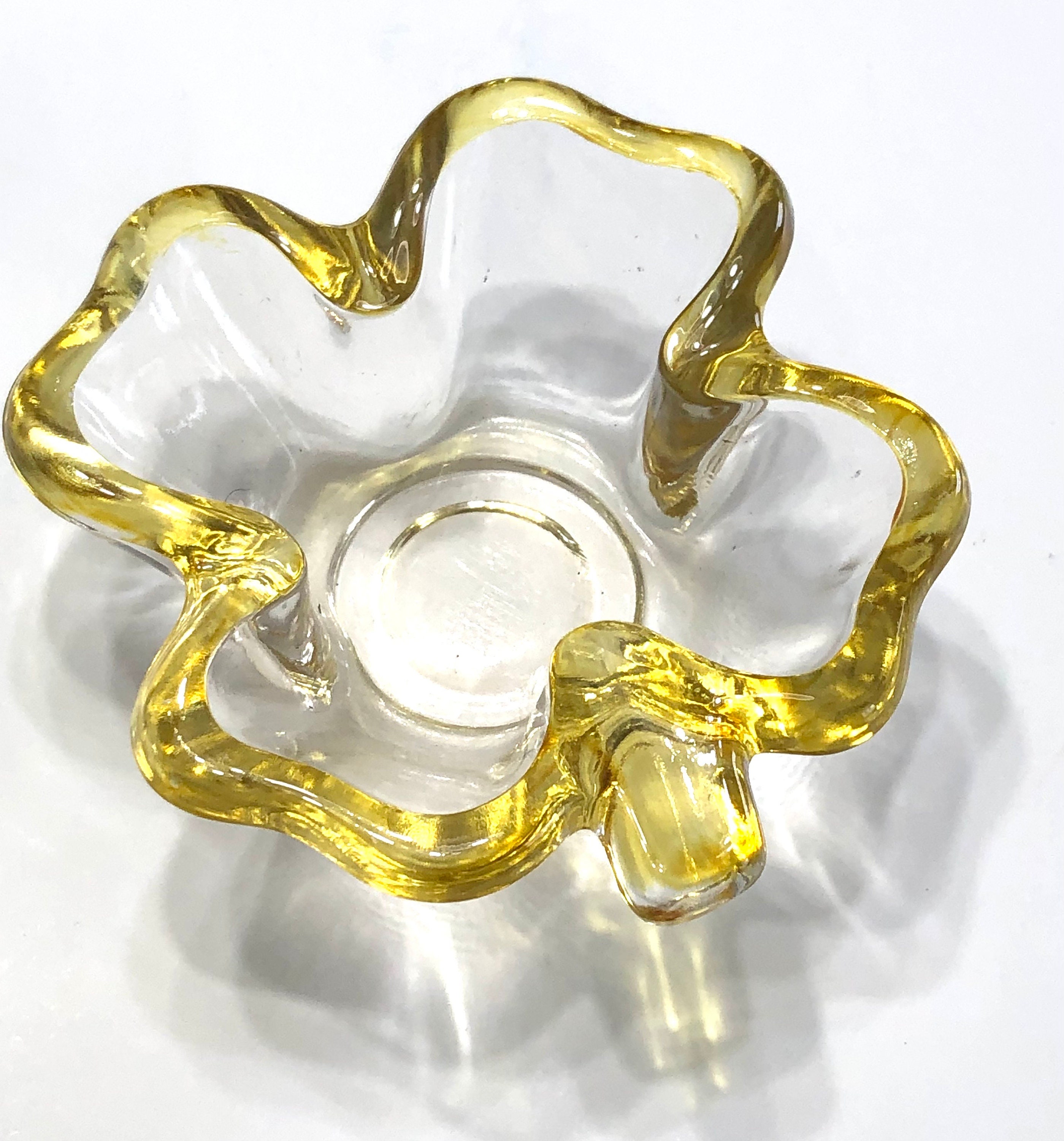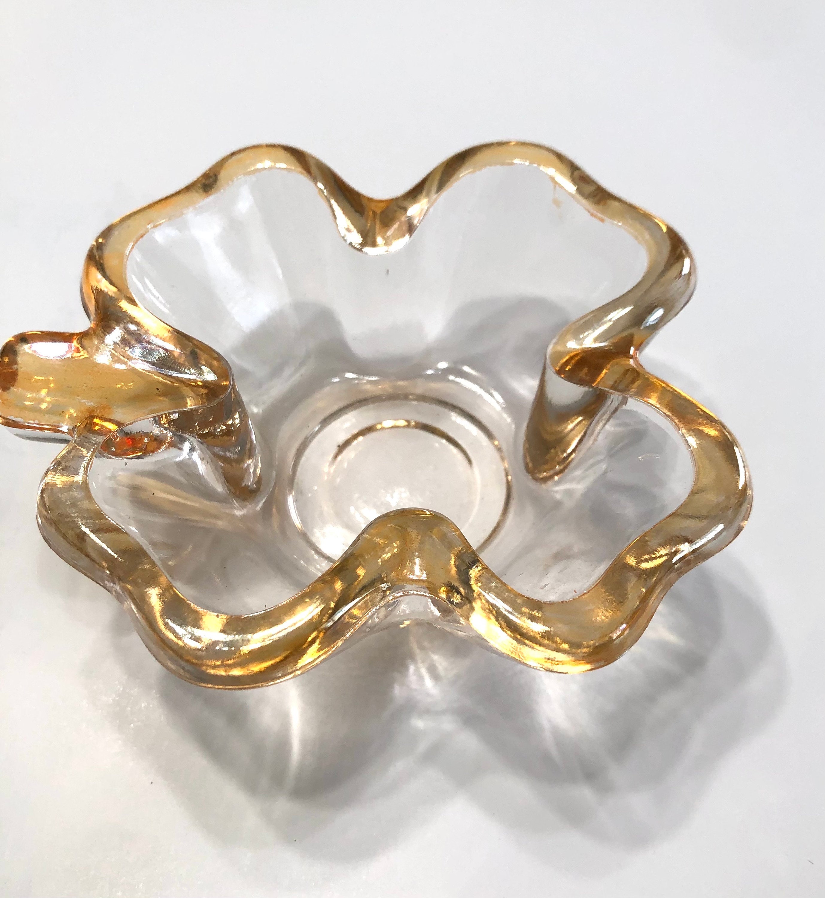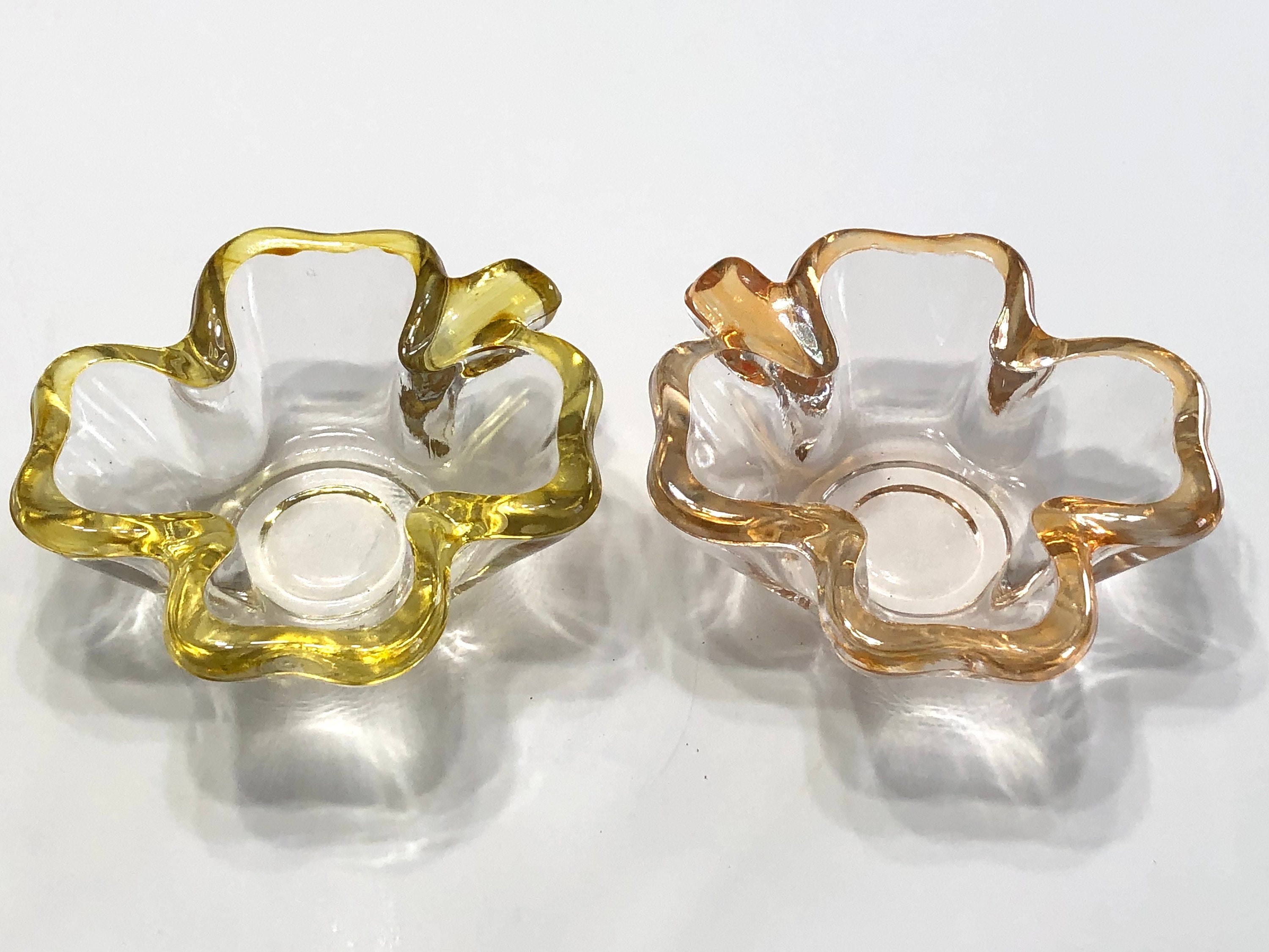 Vintage Candy or Nut Dishes, Heavy Glass with Colored trim around the top. One piece is trimmed in Pink, the other Yellow. These were popular when ladies would meet for lunch and bridge and sewing circles before Television and Women with careers (Lol) changed lifestyles! They served as snack dishes and are also handy accents for St. Patrick Day Celebrations! Measurements: 4"x1.5" SOME DETAILS FOR YOUR SHOPPING CONVENIENCE: All items are researched for identification verification to the extent that resources can be found and described accordingly, including condition, age, and current market price. The seller makes no claims of expertise in any area and descriptions are based on above stated criteria. Please email any questions or comments to the contact information provided. Free shipping unless otherwise stated. Local pick up is available upon request through the seller contact information provided. All items are wrapped securely and double boxed to ensure safe arrival from “The Pelican Place” to your place! Thank you for viewing this item! The Pelican Place