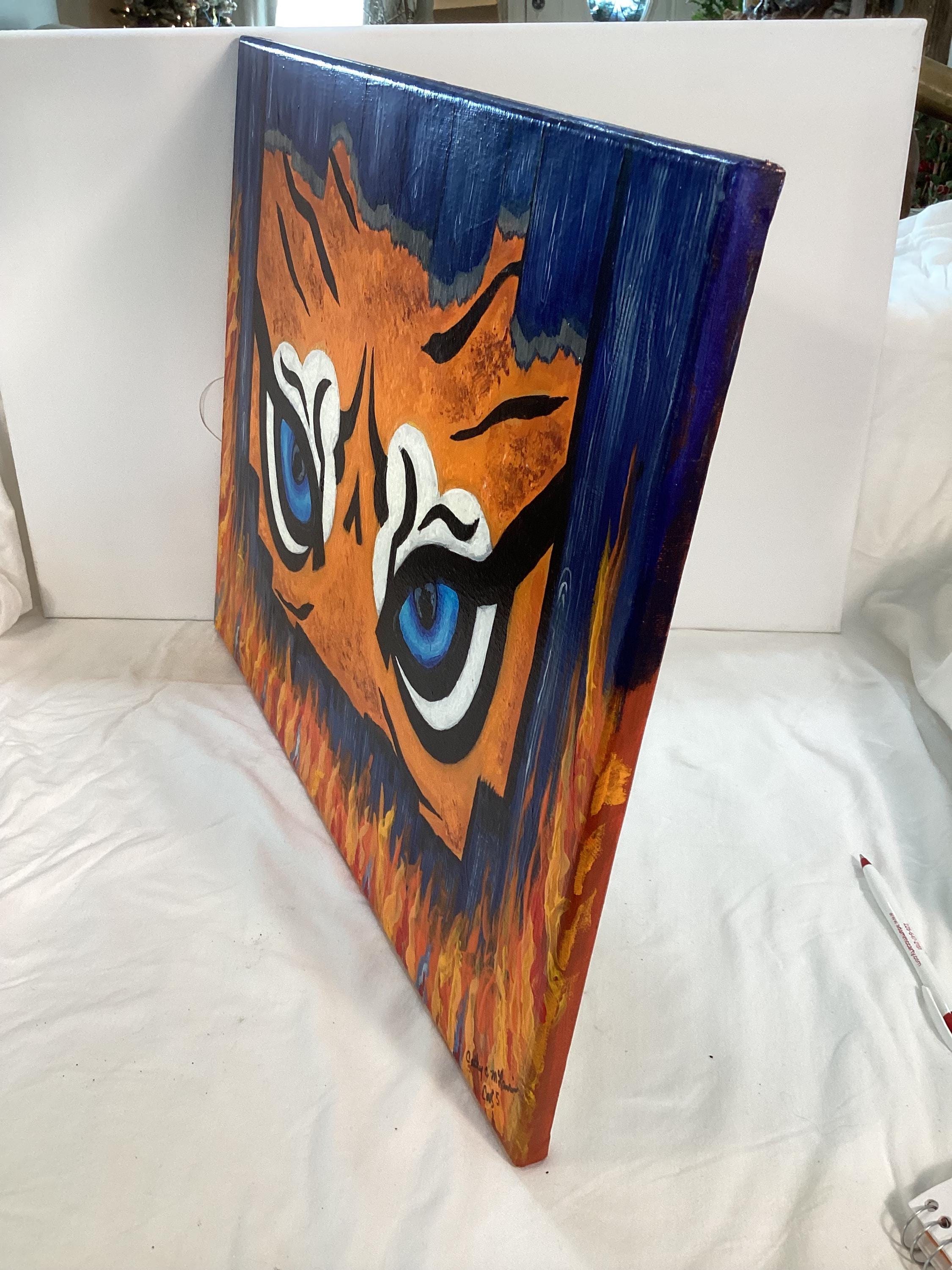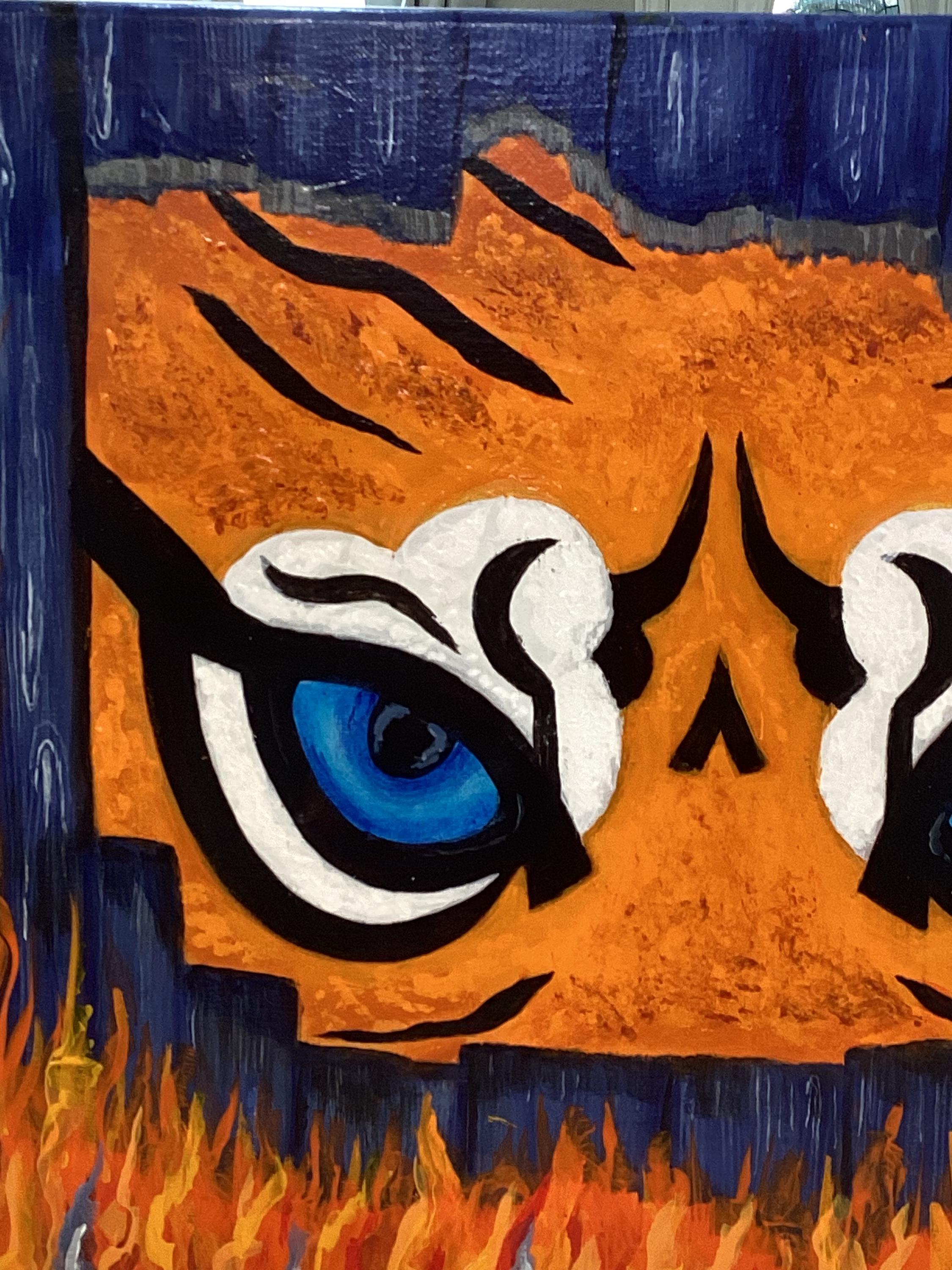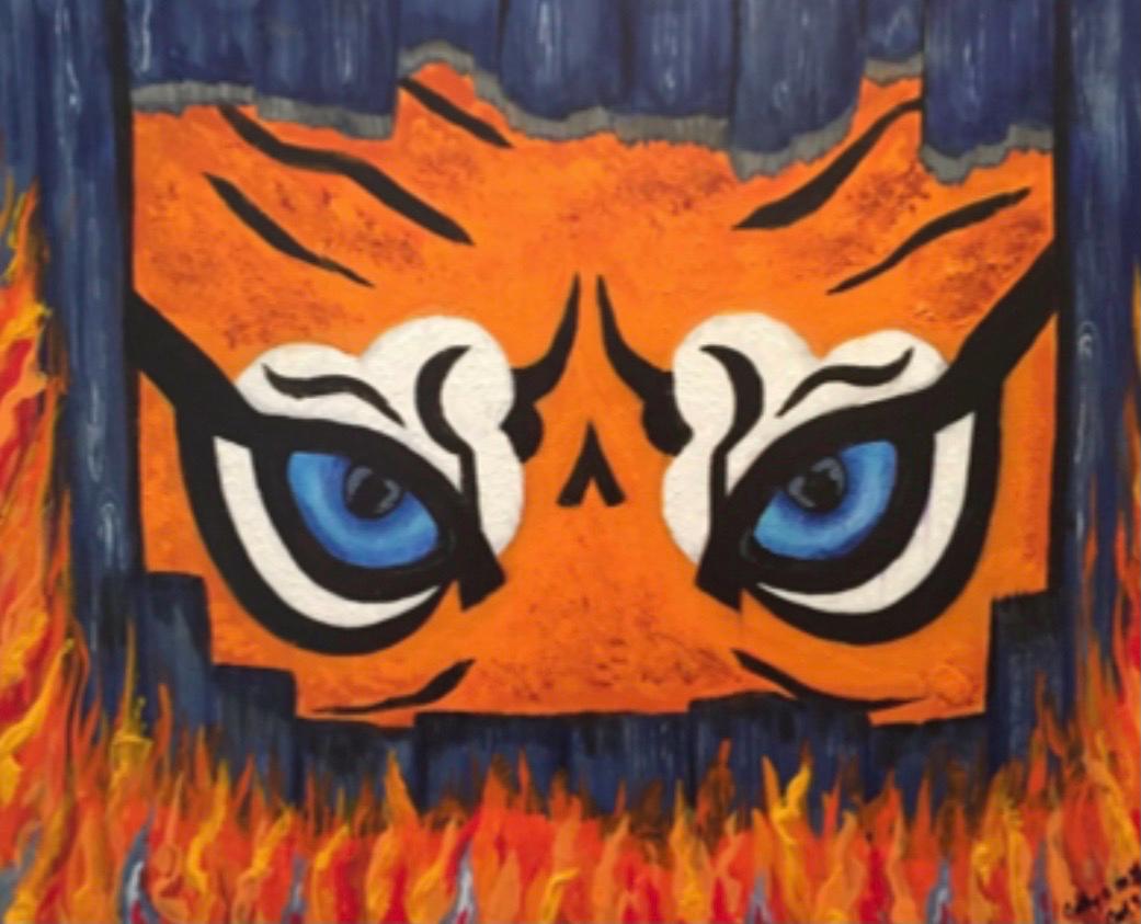 Auburn fan? This one’s for you! “Iron and Fire” acrylic painting on a standard thickness gallery wrapped canvas. If Alabama is home base, and you are a football fan you know the passion on game day for the Iron Bowl!