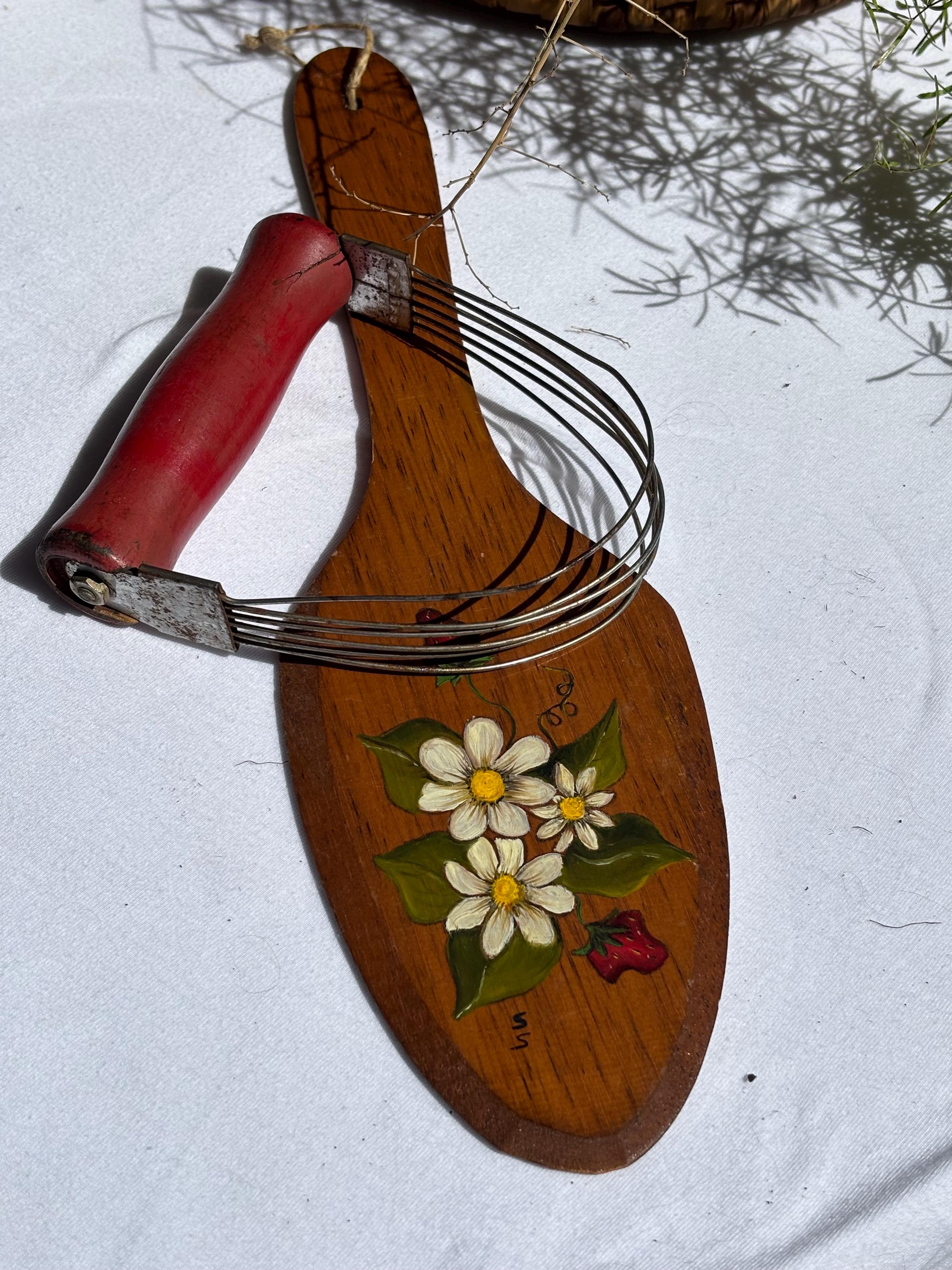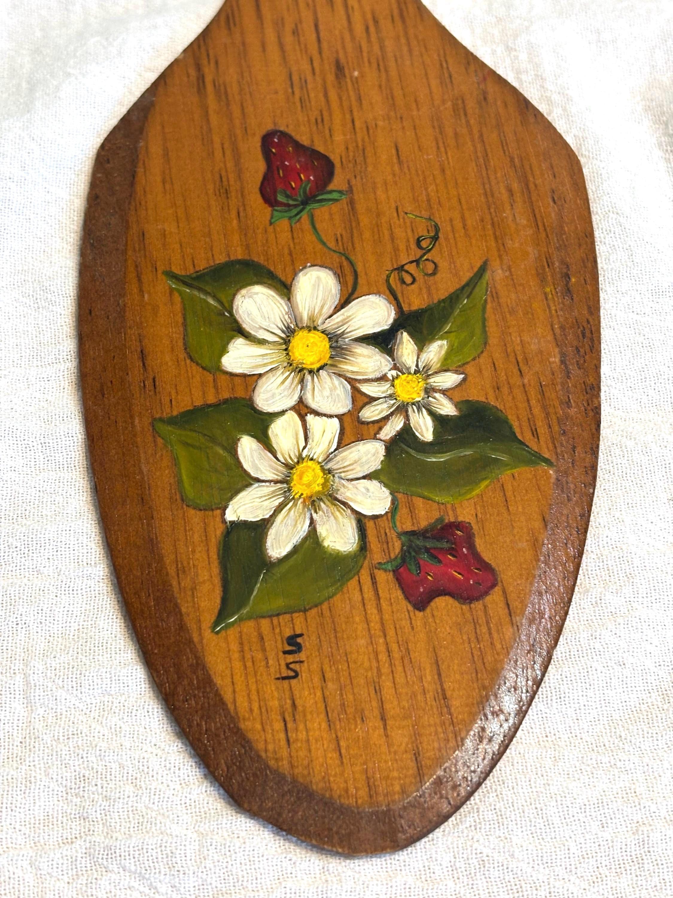 Vintage Kitchen Oven Paddle Strawberry and Daisy motif for that Red and White Farmhouse Kitchen Decor. Hand painted (Tole Painting) and crafted on solid oak. 14.5"L x 4" W
