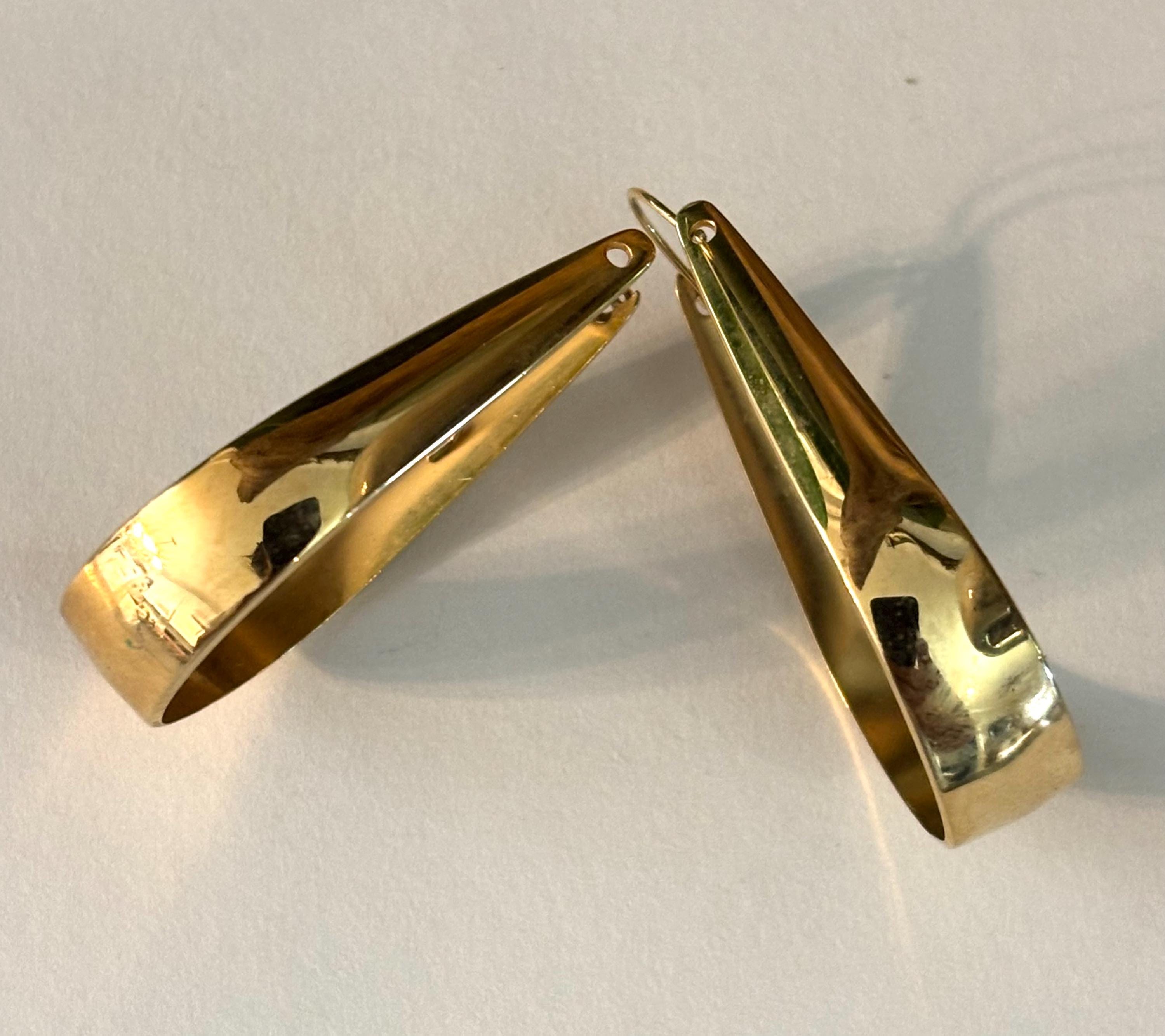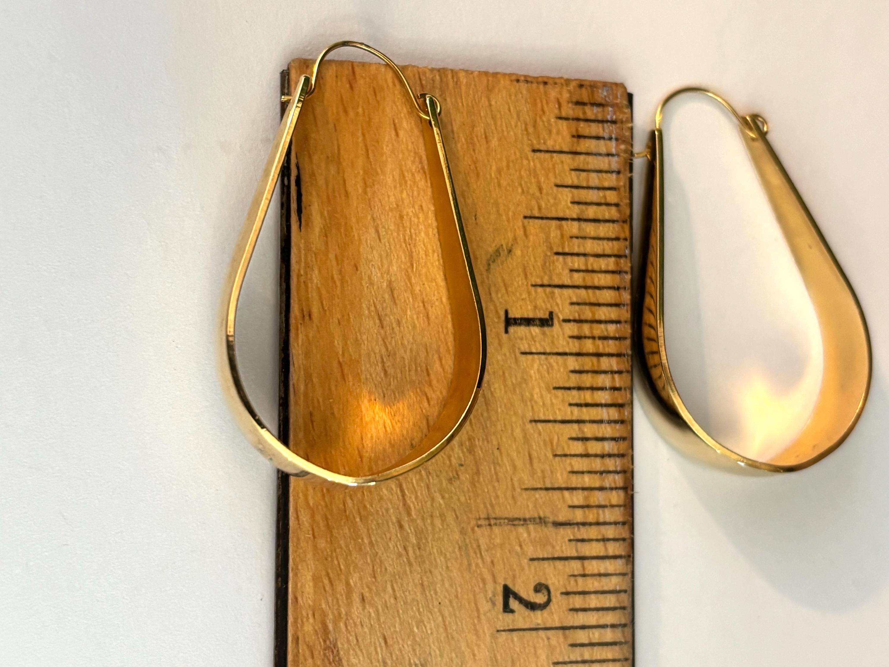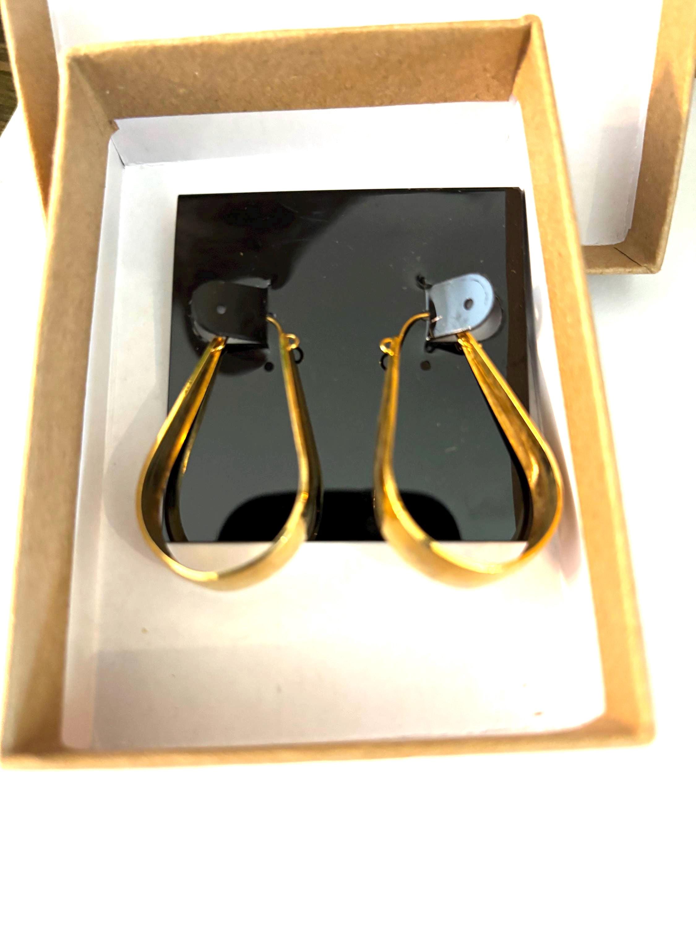 Hoop Drop Style Earrings in a Gold tone finish, Fish Hook Wire Closure, Vintage 1980' -90' these are stunning. (see photos). The resurgence in Gold Tone jewelry for the past few years and these earrings are an investment in the "never out of style wardrobe accent jewelry! Simple and classic design , wear with your favorite little black dress or a casual top with trousers, dressed up or down, this one will not disappoint - it is truly a timeless piece! Details: Gold Tone Metal