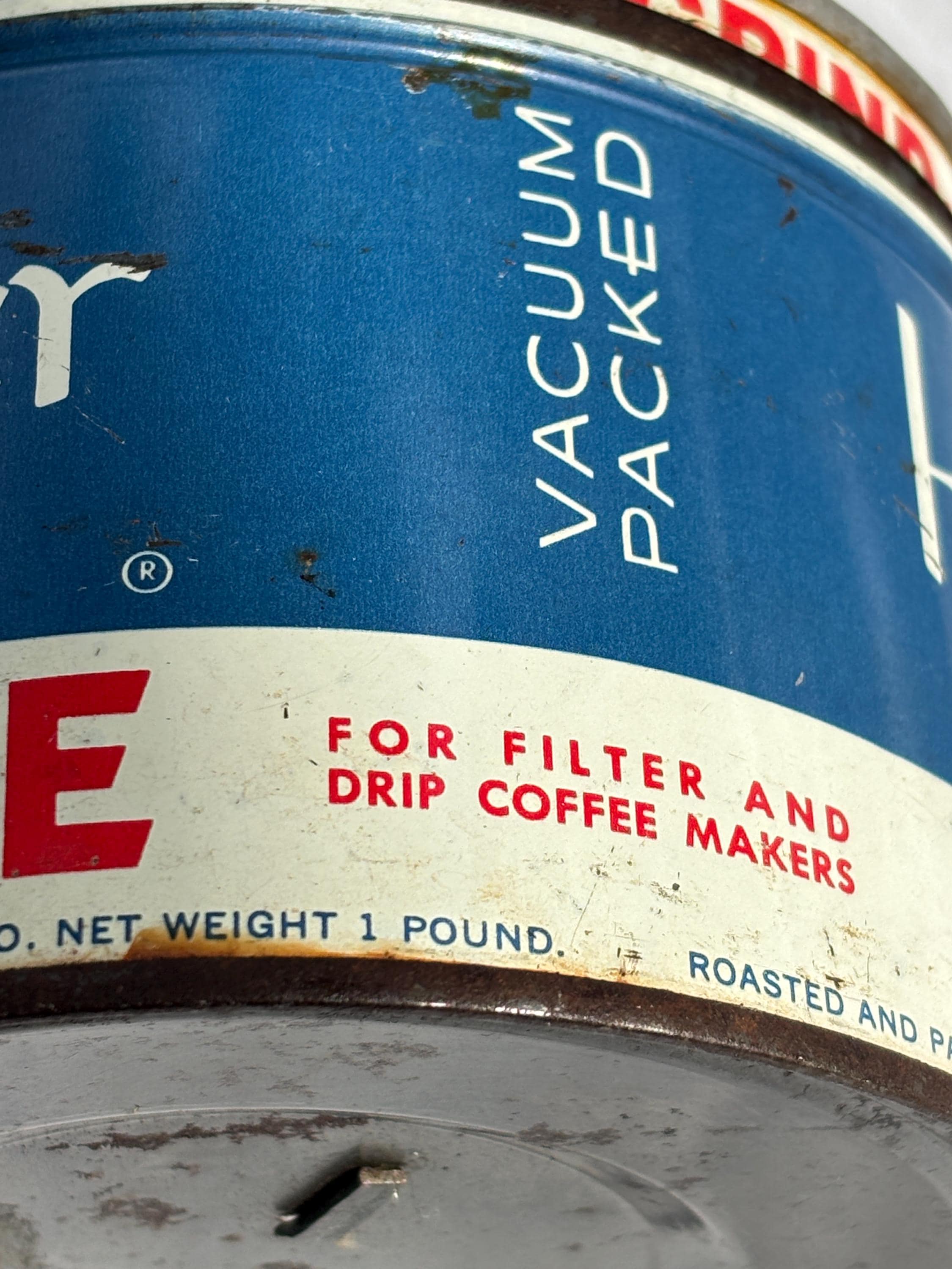 See the research notes below; there is no zip code included in the company address so this tin was produced prior to 1963, roasted for either filter or drip coffee makers would indicate post WWII. Coffee Filters: Paper coffee filters were introduced in 1908 by Melitta Bentz, a German housewife from Dresden. Brown unbleached filters were introduced in 1989 Zip Codes: The United States Post Office Department introduced five-digit Zone Improvement Plan (ZIP) codes on July 1, 1963. Percolators: Percolators were introduced to the general public in the late 19th century, with significant patents issued to James Nason in 1865 and Hanson Goodrich in 1889. Although early designs existed around 1810–1814, they became a staple in American households during the 1940s and 1950s due to increased mass production,Electric Coffee Pots (Mr. Coffee): Electric drip coffee makers became available to the general public in 1972 with the introduction of the Mr. Coffee brand.